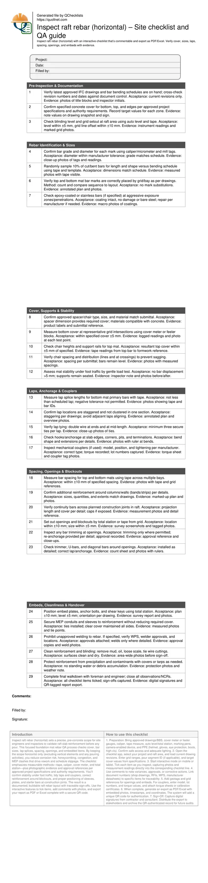 How to Use This Interactive Raft Rebar Inspection Checklist
